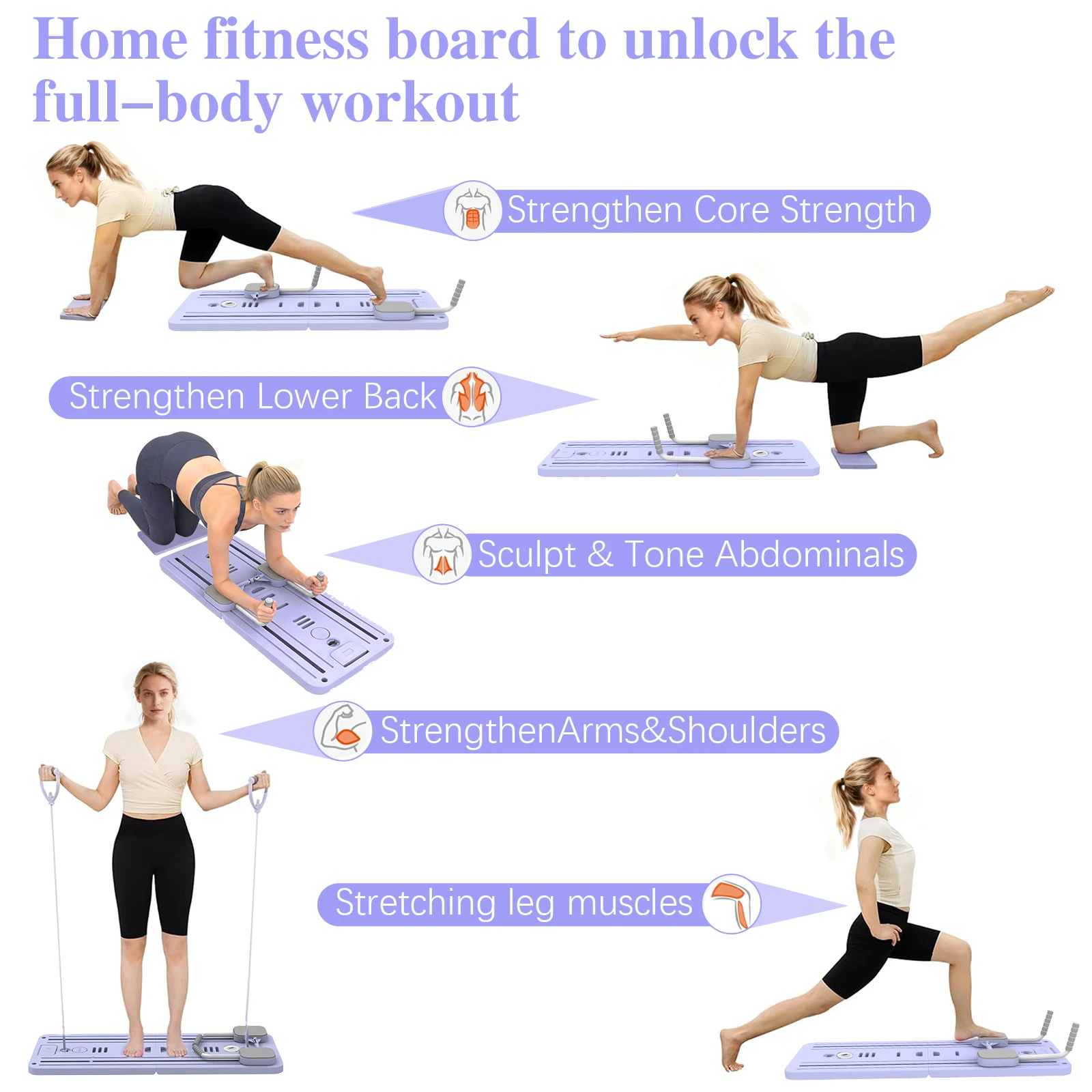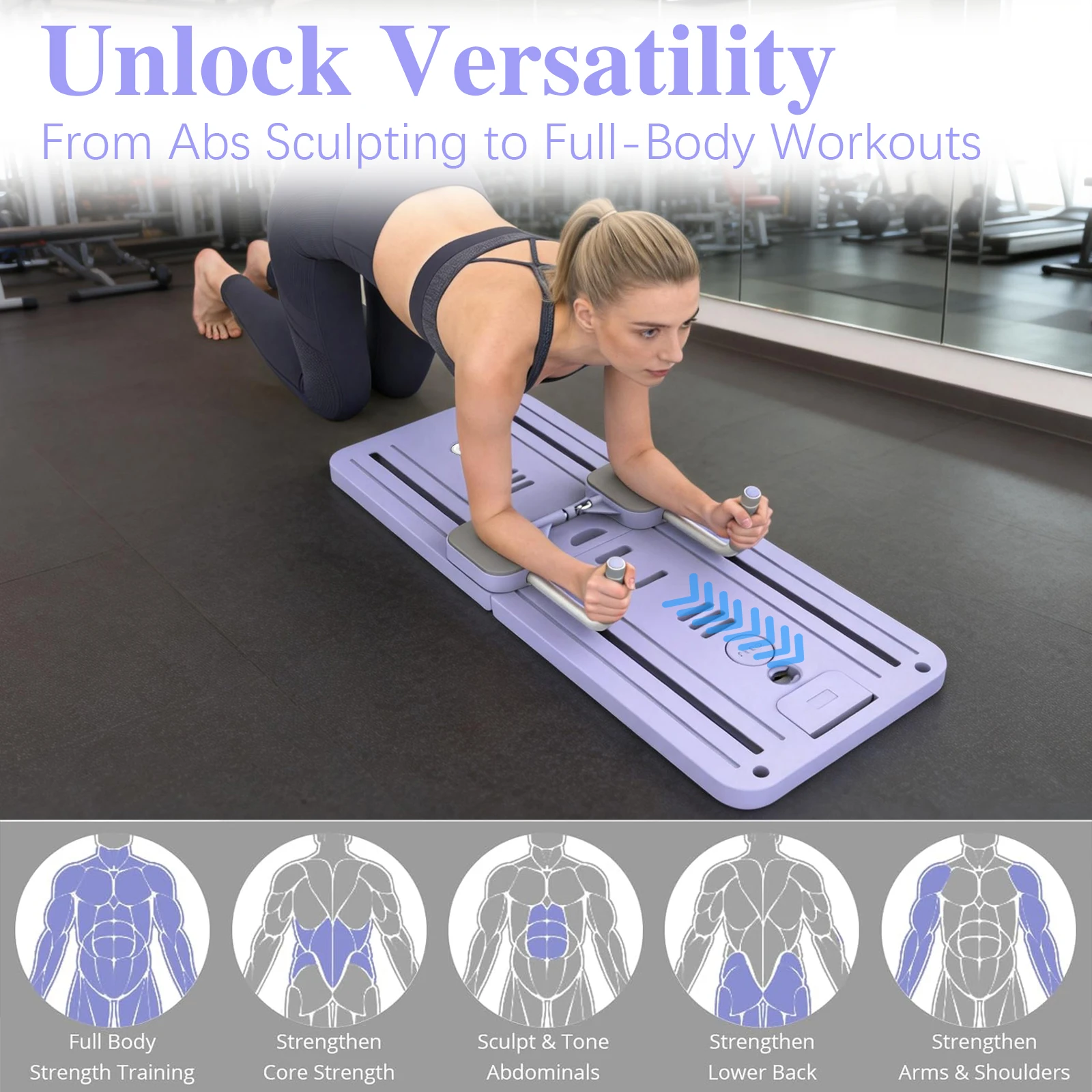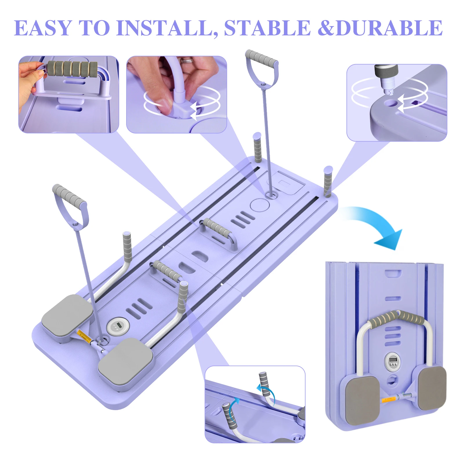 Dotée d’une bande de résistance pour un soutien supplémentaire, cette planche offre une sécurité accrue tout en réduisant la pression sur les articulations. Les accessoires fournis, tels que le compteur, le coussin de genoux et le support pour téléphone, enrichissent votre expérience d’entraînement, rendant chaque séance pratique et agréable.